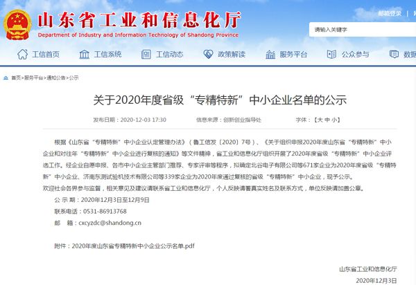 根據(jù)《山東省“專精特新”中小企業(yè)認(rèn)定管理辦法》(魯工信發(fā)〔2020〕7號)、《關(guān)于組織申報2020年度山東省“專精特新”中小企業(yè)和對往年“專精特新”中小企業(yè)進(jìn)行復(fù)核的通知》等文件精神,省工業(yè)和信息化廳組織開展了2020年度省級“專精特新”中小企業(yè)評選工作。經(jīng)主管部門推薦、專家評審等程序,確定我公司為2020年度省級“專精特新”中小企業(yè)。